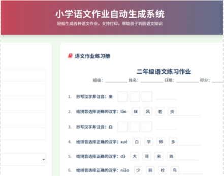 小学语文作业布置出题网站源码简单方便的作业练习册随机出题网站源码支持打印