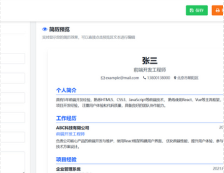导出功能:支持打印和导出 PDF 格式,方便用户投递简历。