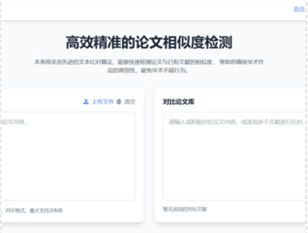 功能完整:包含论文输入 / 上传、对比文献管理、相似度检测和结果展示等核心功能