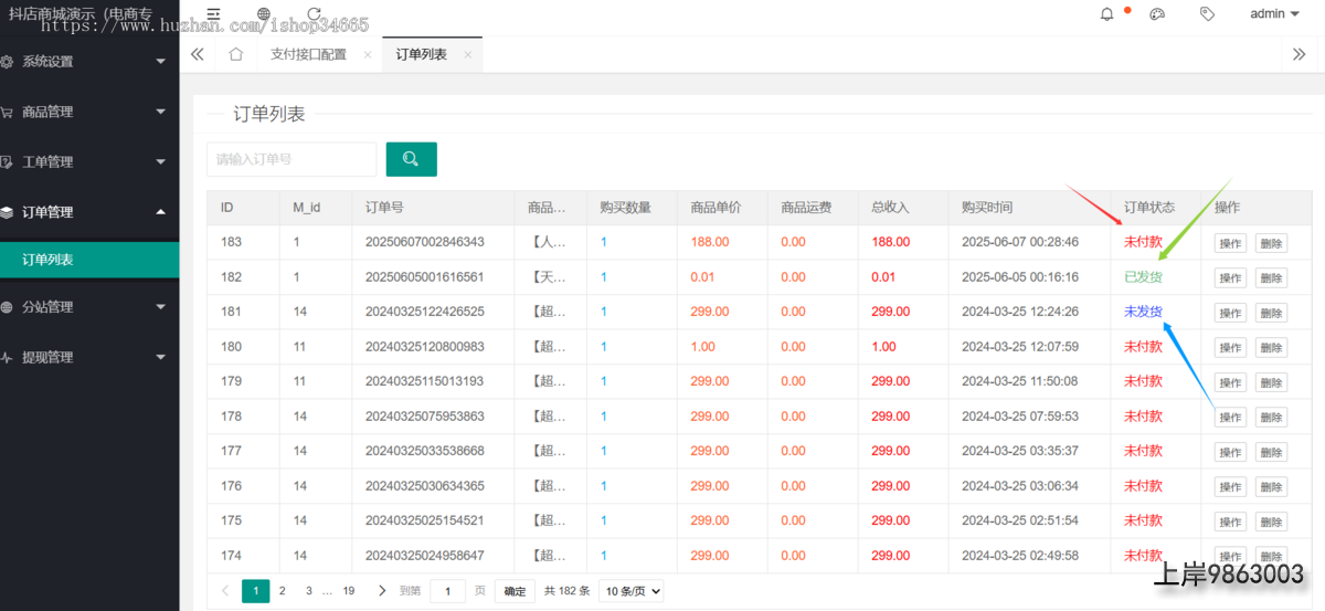 源码后台功能齐全,上传管理商品,查询订单状态!已经对接好了易支付,轻松对接各种第三方支付