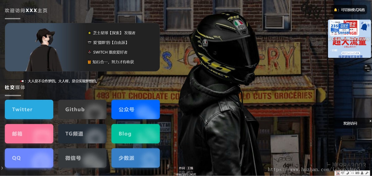 全部课程 / 会员区 / 一款HTML静态页面黑色简洁个人主页自适应模板