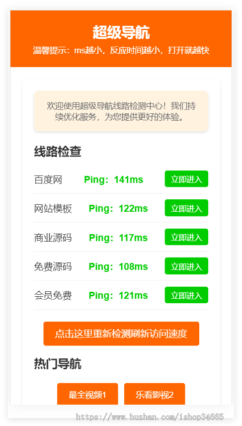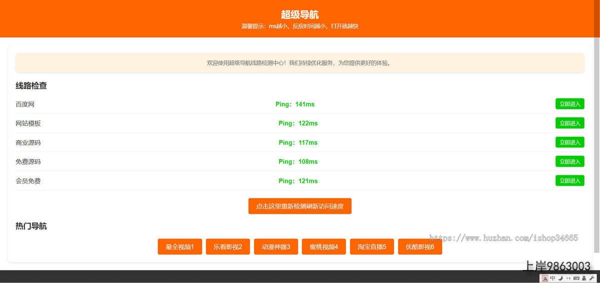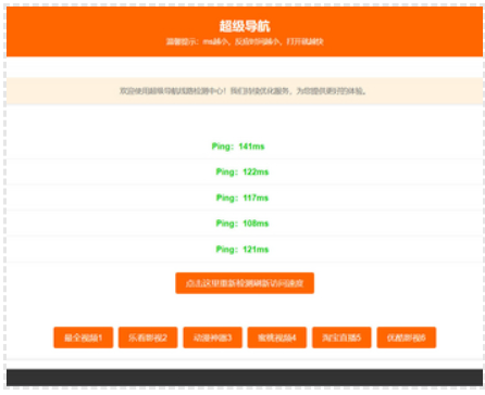超级导航带线路检测发布页面简洁漂亮橙色静态页面