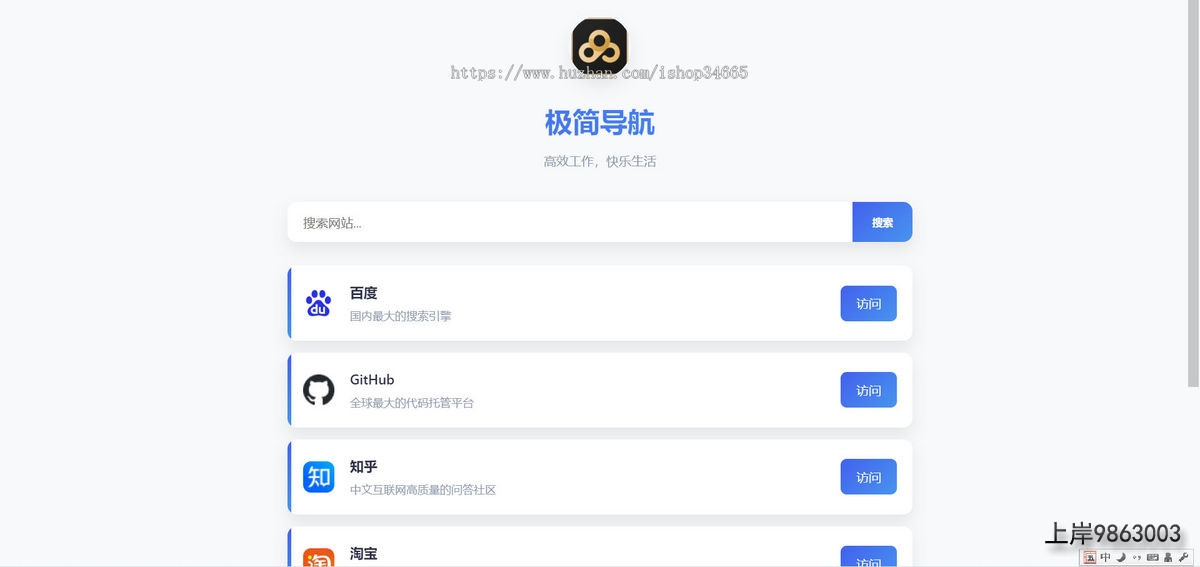 快捷轻便的极简导航带关键词搜索