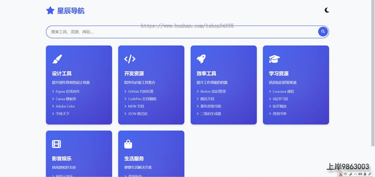 蓝色块装分类导航页面纯静态HTML源码开源随意修改灵活方便